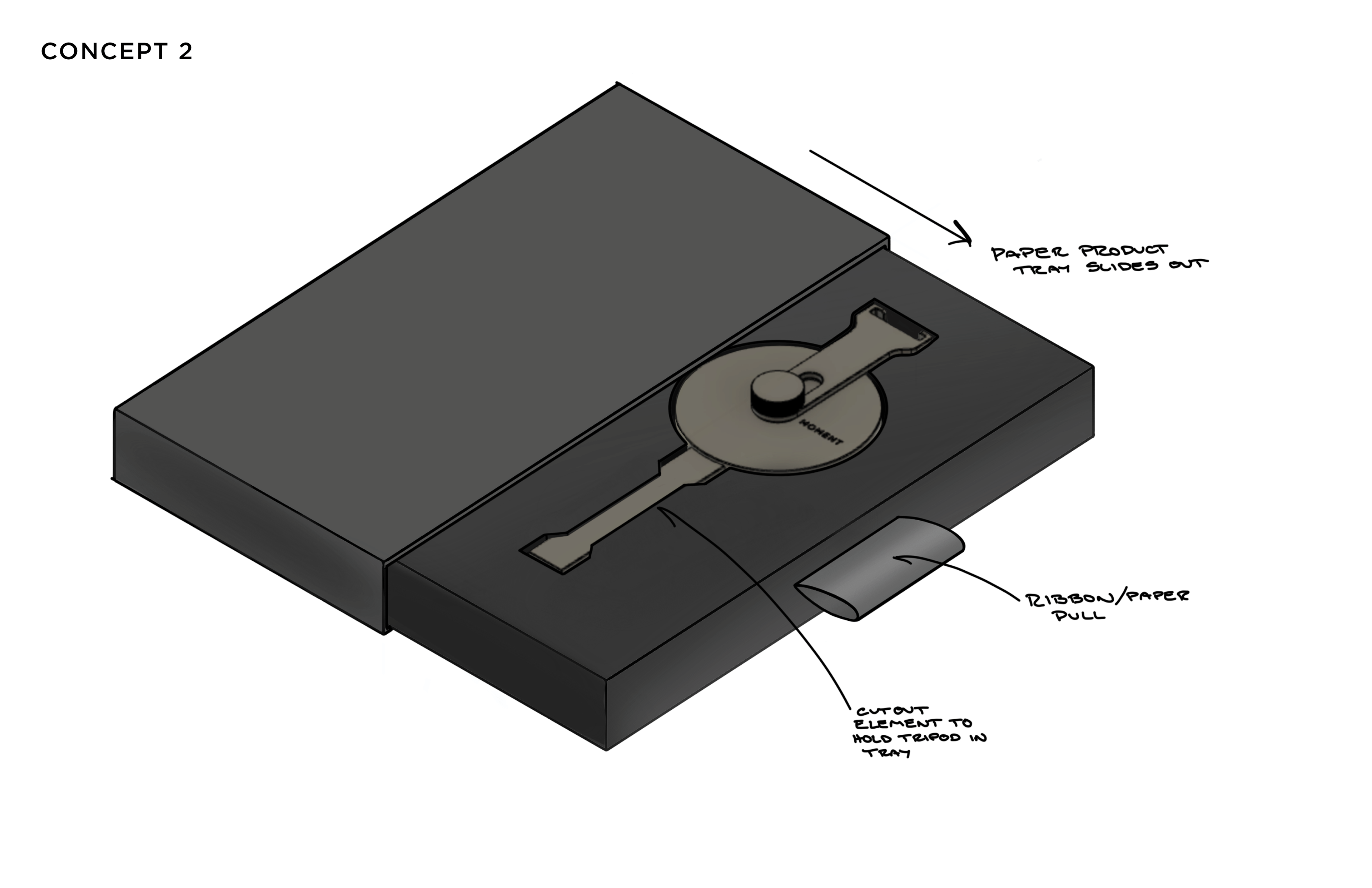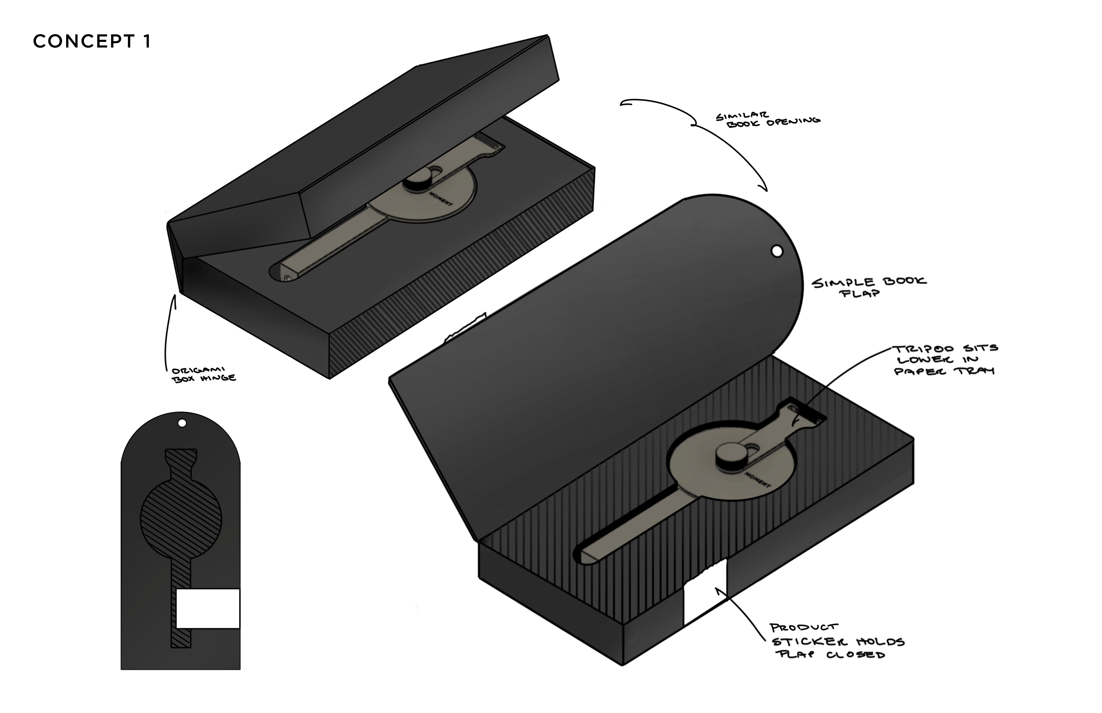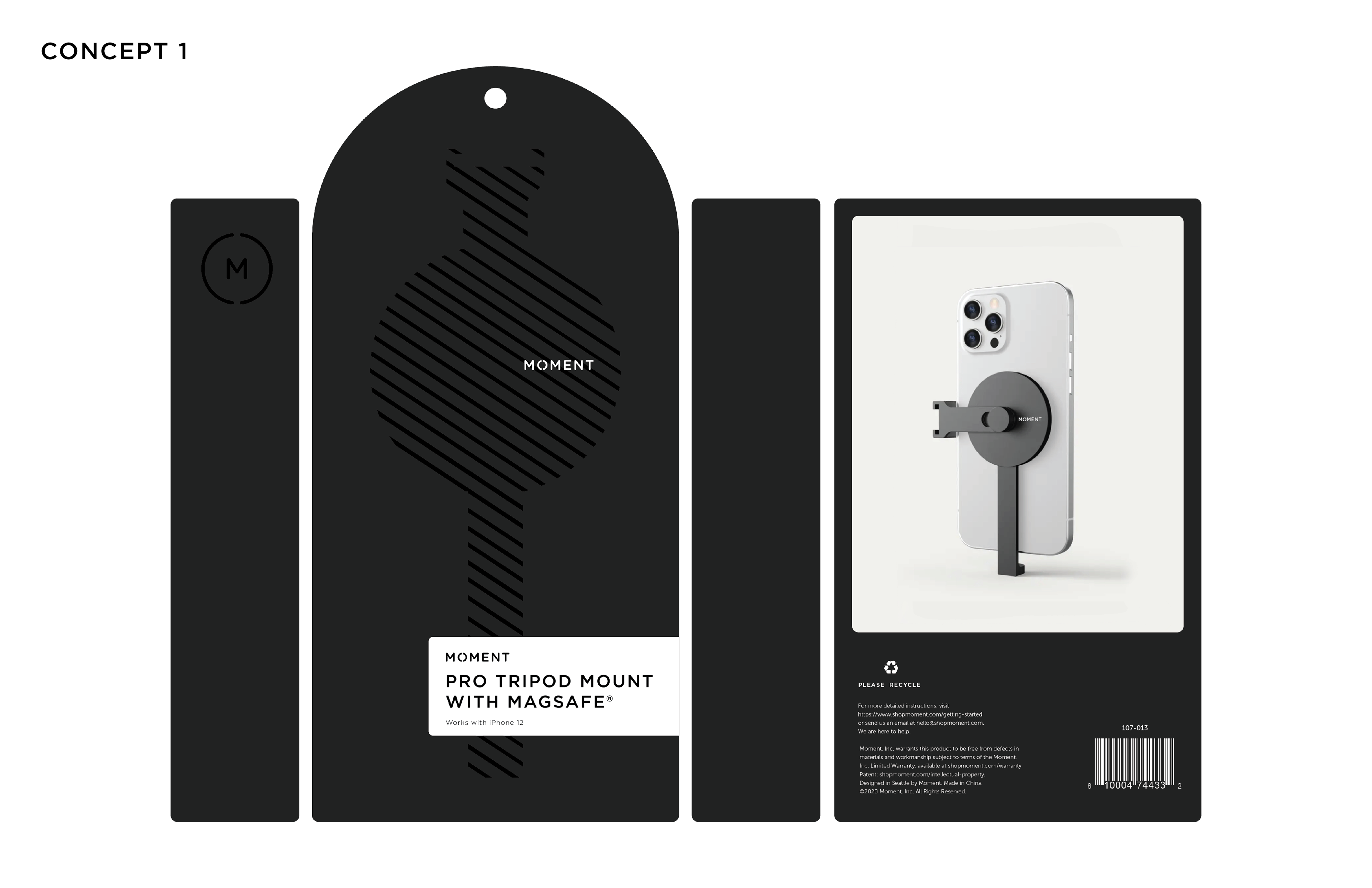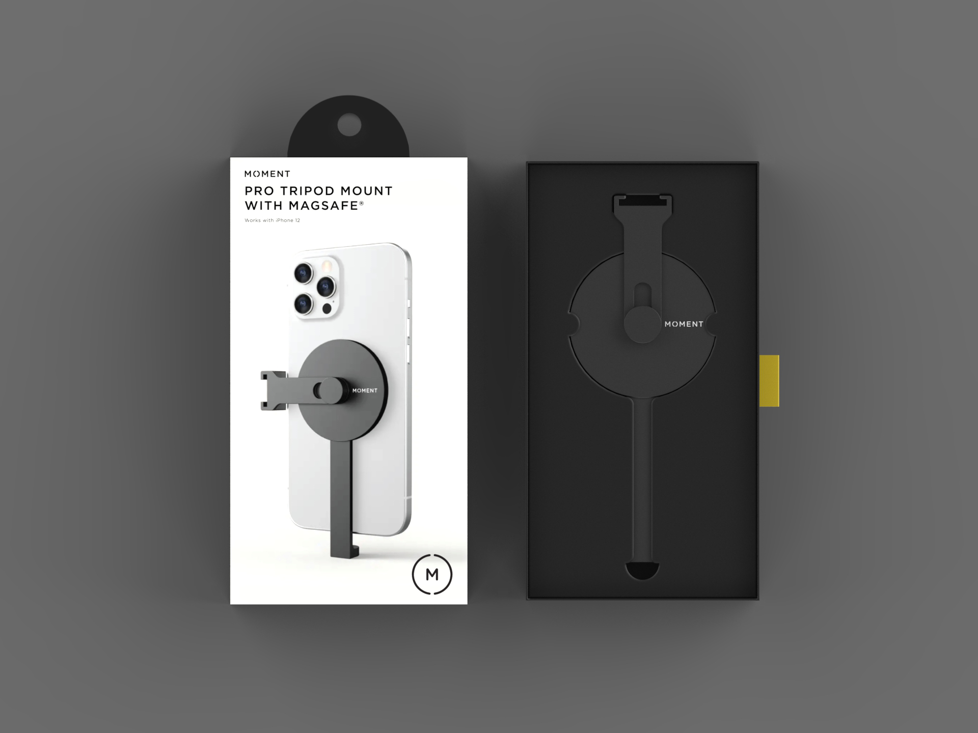 SUMMARY This was a short contract project for a packaging design for Moment's MagSafe Pro Tripod Mount. The main objectives were to keep packaging as minimal and sustainable as possible while using a single material.