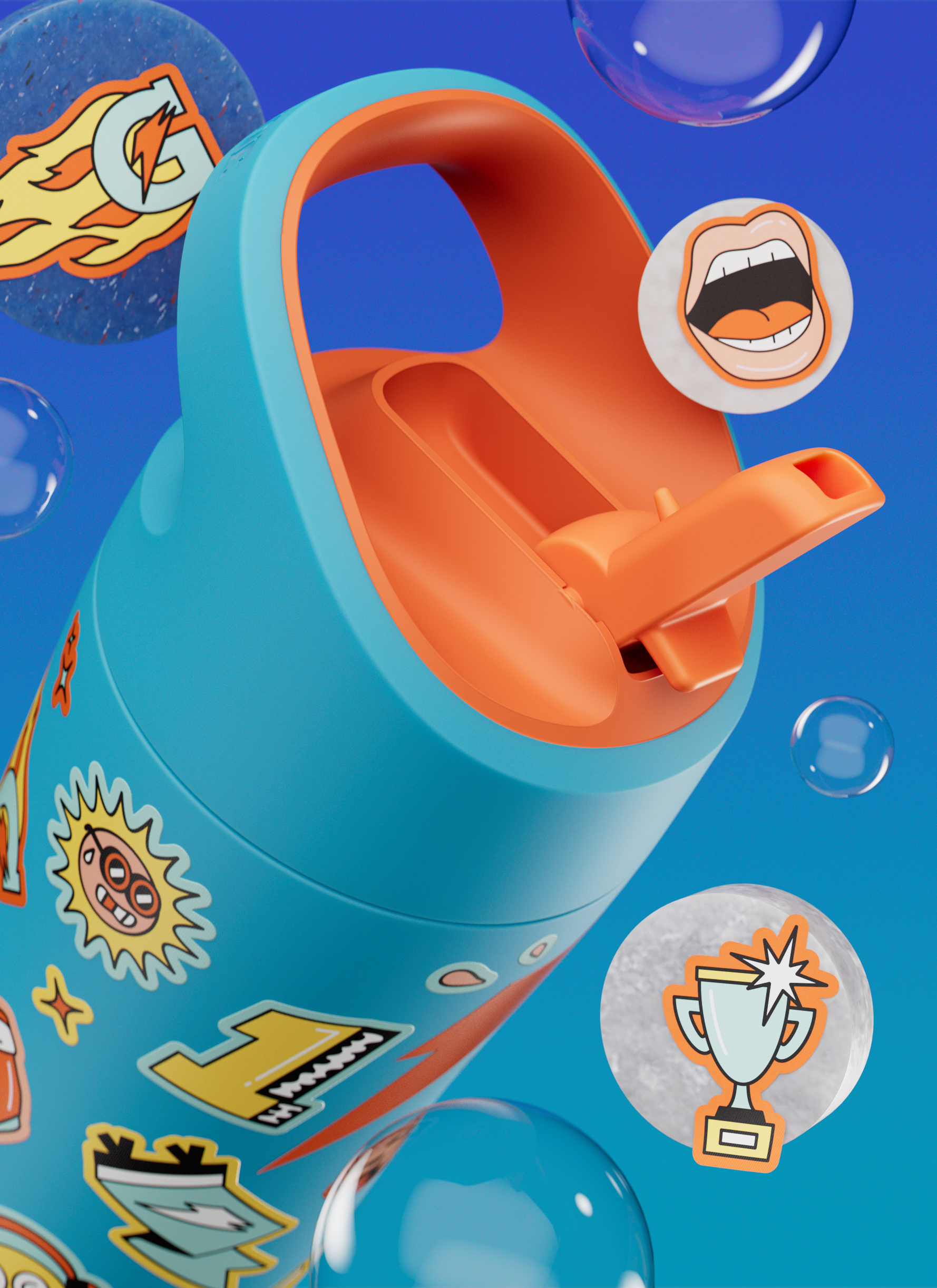 SUMMARY Built for rough play, we designed the first Gatorade bottle specifically for kids. Anchored in sport, this vessel packs pro-level stainless steel performance with a bold, expressive design helping young athletes stay hydrated on and off the field.