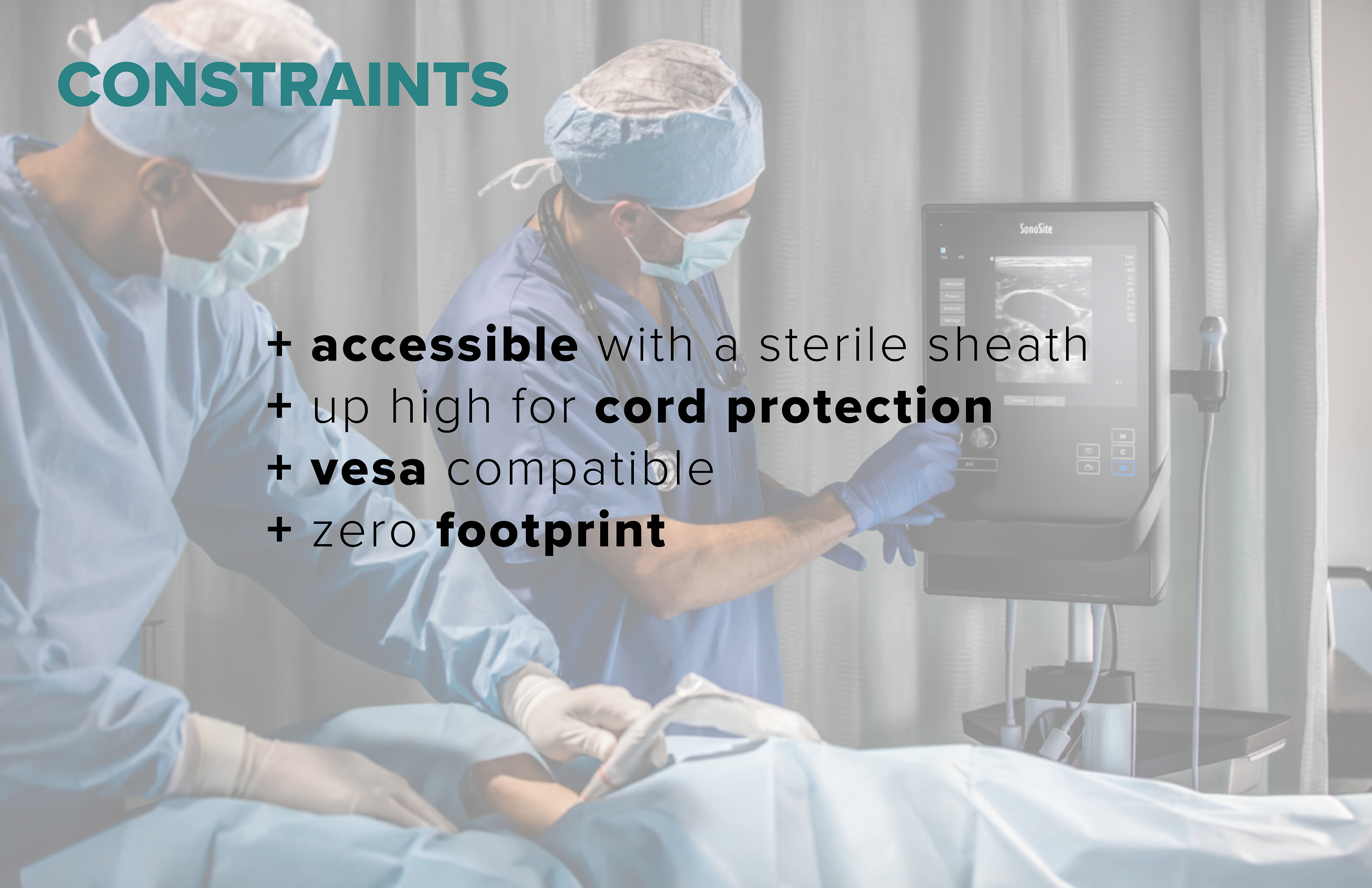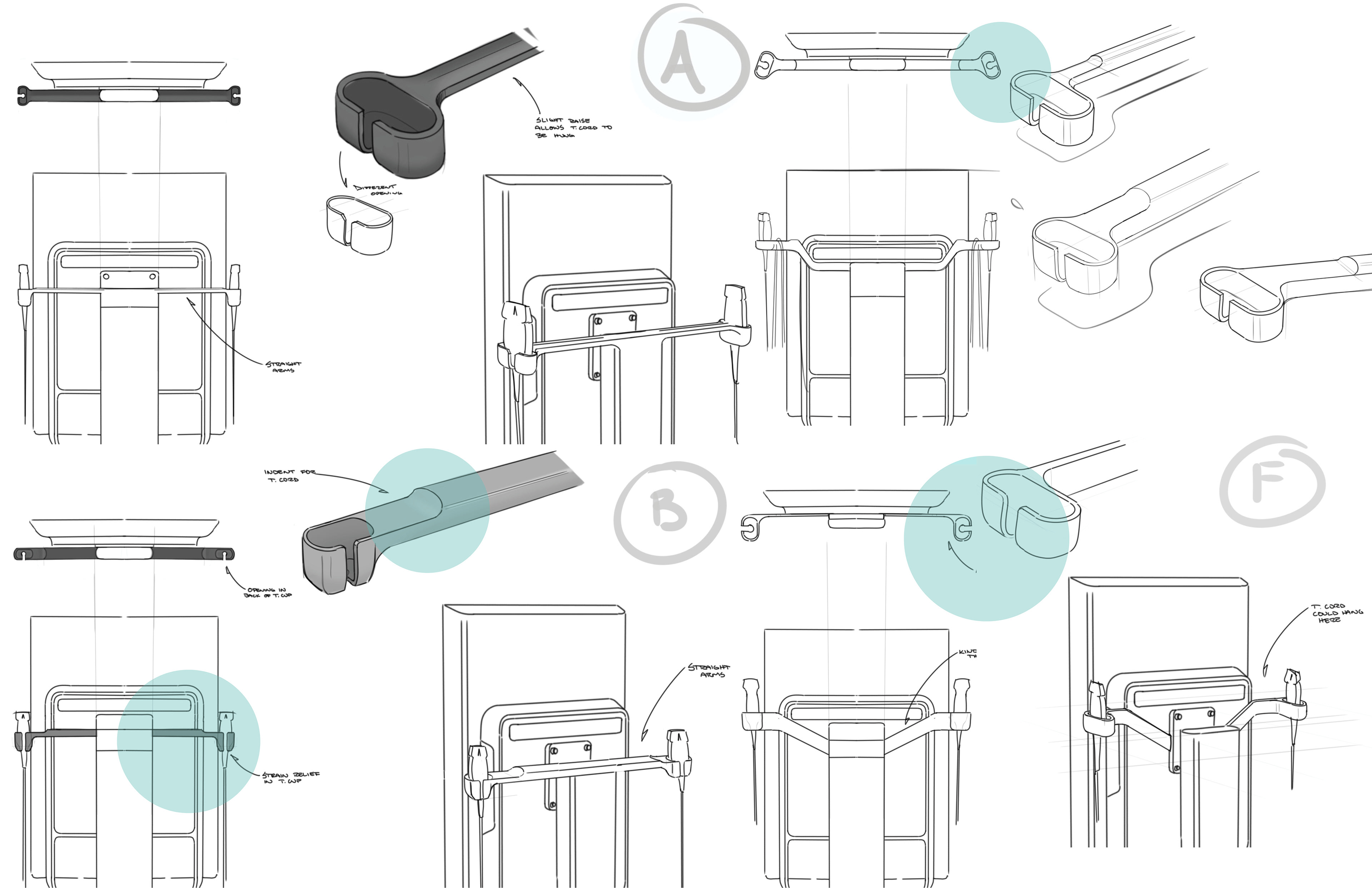 SUMMARY During the summer of 2018, I had the opportunity to do an industrial design internship with Fujifilm Sonosite in Bothell, WA. During the 3 months I was there, I learned about point of care medical devices and how important every design decision is for products that live in this space. Everything has a reason why it was designed the way it was. My focus was to redesign the probe holders with more consideration for both the users and the environment. The solution, a redesigned holder with geometry changes to maximize efficiency and offer a cleaner solution for parts that had been previously overlooked.